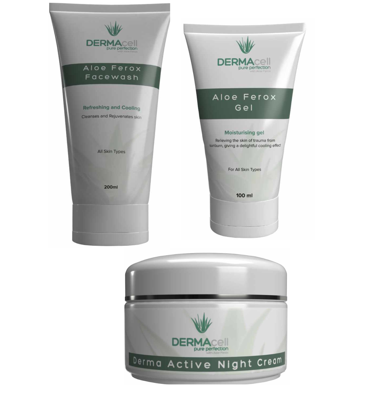 Normal Skin combo : Dermacell Aloe Ferox Gel 100g , Dermacell Cream Face Wash 200ml  and Pigment Normal Night Cream.